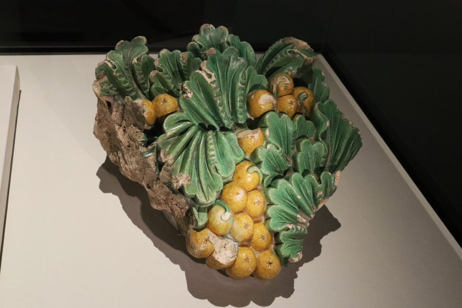 圓明園集中國古典園林風(fēng)格及造園技藝之大成,清帝在數(shù)次南巡後,將杭州西湖、獅子林和無錫寄暢園的園林布局移植至園內(nèi),融合了南北勝景,同時集合中西建築藝術(shù)的精華,是清帝對世界想像的極致。經(jīng)歷戰(zhàn)爭後,宮殿「西洋樓」因存較多石質(zhì)廢墟,而成公眾較為熟知的建築,並一直呈現(xiàn)大理石的灰白色。然而從展品「建築裝飾構(gòu)件」可見,建築原貌是色彩繽紛的,附著一層彩色琉璃構(gòu)件,令其呈現(xiàn)出黃綠、天青、翡翠等色調(diào)。梁慧淇指,琉璃構(gòu)件為中式建築的裝飾手法,放在歐式宮殿上使建築的外觀迥異於歐洲,大膽創(chuàng)新。