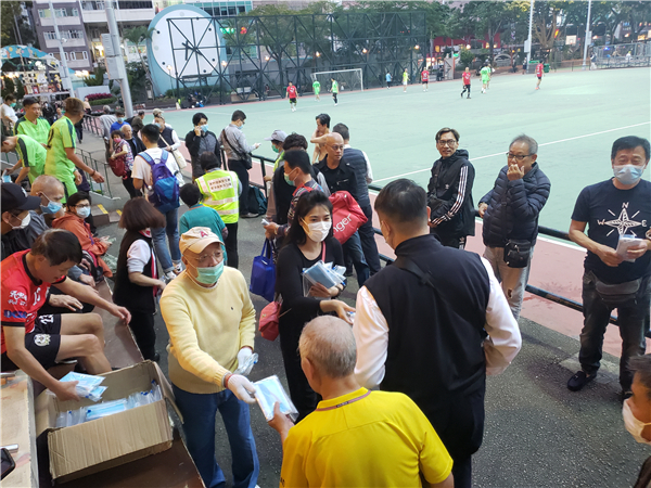 陳李妮日前親自帶隊到灣仔修頓球場派發(fā)口罩給長者。