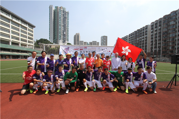 2018年的四地足球比賽,來(lái)自香港、澳門、上海、寧夏四地的中學(xué)足球隊(duì)青少年球員與張廣勇及嘉賓合照。