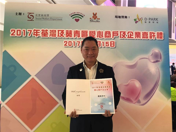 格林洋行於2017年榮獲「愛(ài)心商戶(hù)及企業(yè)」稱(chēng)號(hào)。