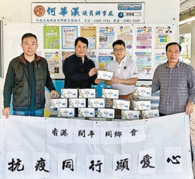 鄺智航代表香港開平同鄉(xiāng)會向社區(qū)捐贈口罩。