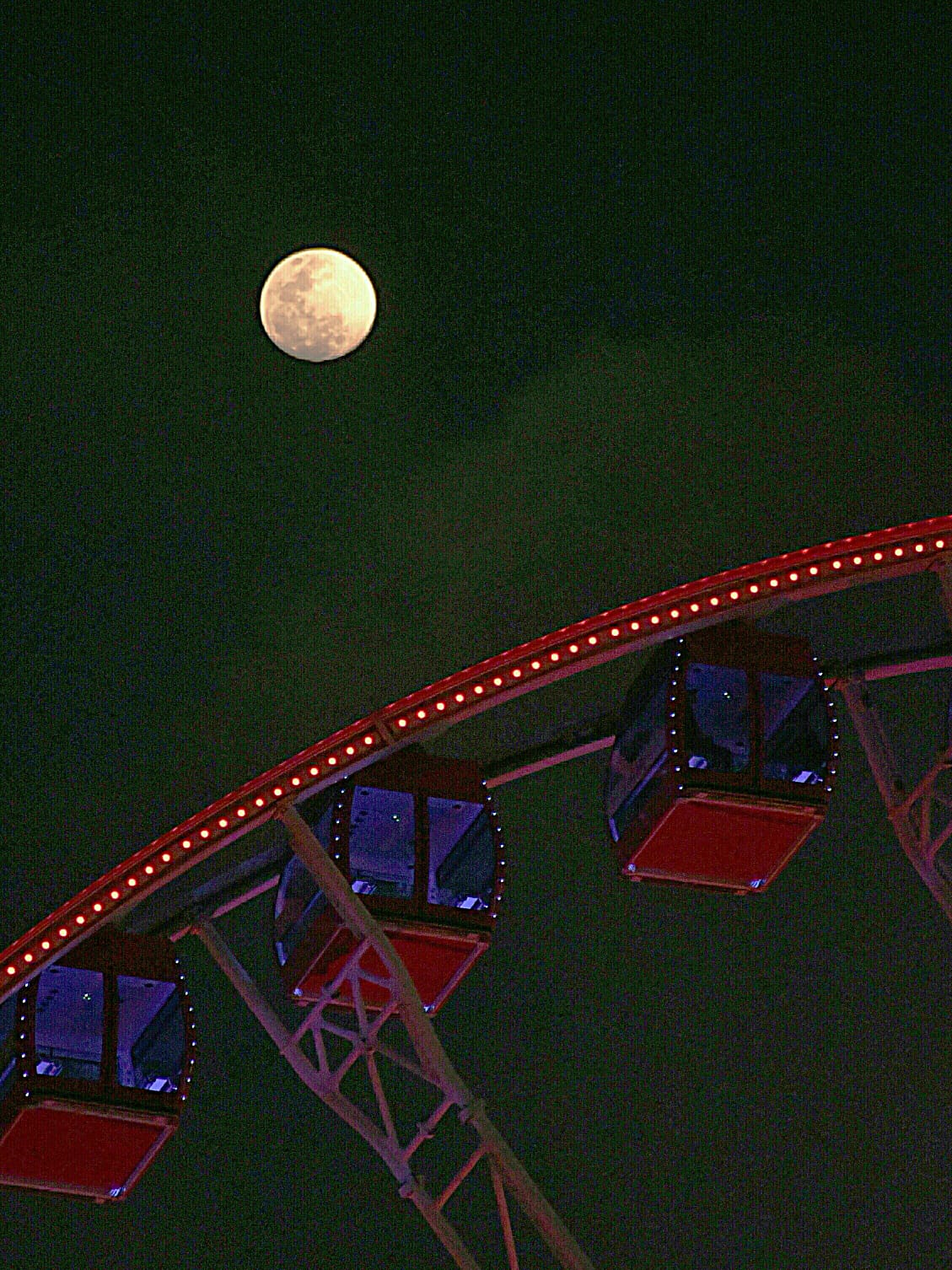 每年賞月之際,香港文化中心總是人頭湧湧,其實附近的中港城瞭望臺也是賞月好去處。瞭望臺可透過商場的扶手電梯到達,位於中國客運碼頭上方,故能飽覽維港美景,適合日落及夜晚時分前往。在瞭望臺中有海豚水池,當夕陽下沉時為該處增色不少。到了晚上,坐於瞭望臺的座椅上談天,或沿著平臺漫步,吹吹海風,亦是相當有情調(diào)??粗嵉脑律褂昂V校焐显屡c海中月相互輝映,對岸是高樓林立的璀璨夜景,恍如構成一幅精緻的繪畫,讓你手中相機的快門停不下來。