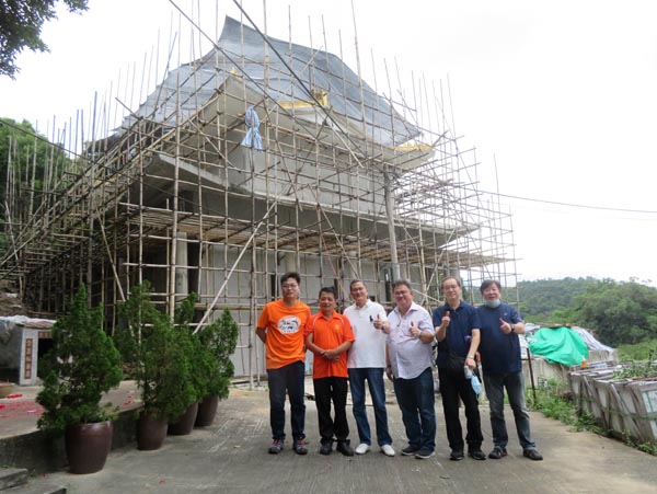 南涌村代表與嘉賓在協(xié)天宮前合照,左三是沙頭角區(qū)鄉(xiāng)事委員會主席李冠洪,左二為南涌居民代表鄭光明。記者鄭玉君攝
