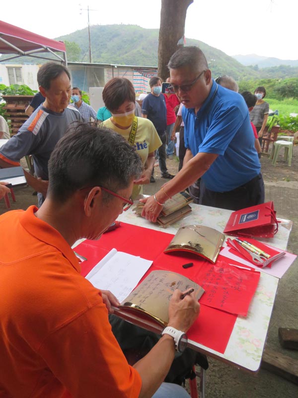 鄭光明說,1962年重建時有上瓦儀式,今次是隔了58年再次舉行。按傳統(tǒng),瓦片會寫上村民祝福語,主要祈求合家平安、家族繁衍,事事順利等。鄭說,從前只有男丁寫,但時代已轉(zhuǎn)變,現(xiàn)在女村民甚至外來善信也可寫,寫了約200塊。至於上瓦在仲秋,仲秋是為秋季的第二個月,即農(nóng)曆八月,是古時說法。民間則稱為中秋。中秋象徵團(tuán)圓,在中秋時開始上瓦特別吉利。