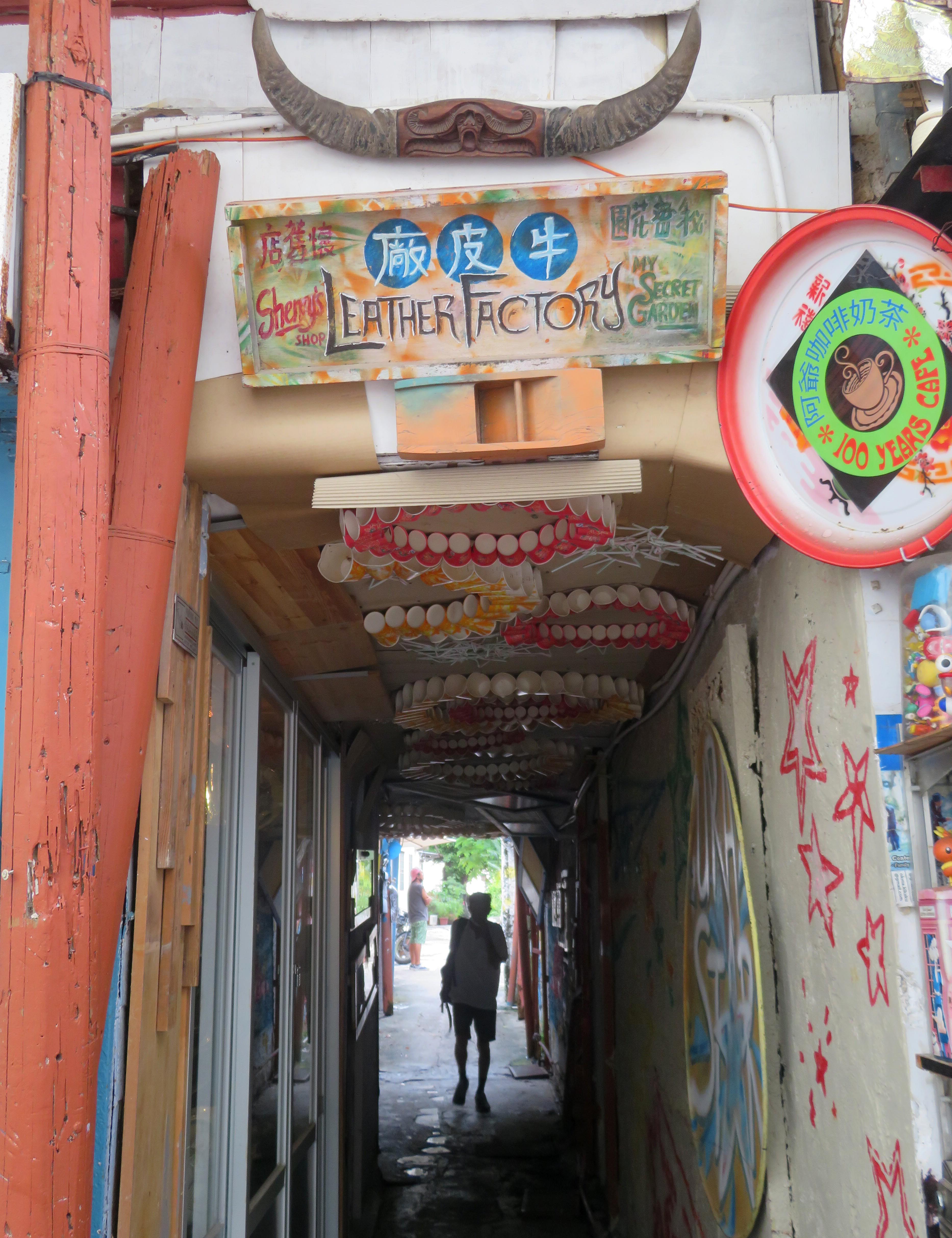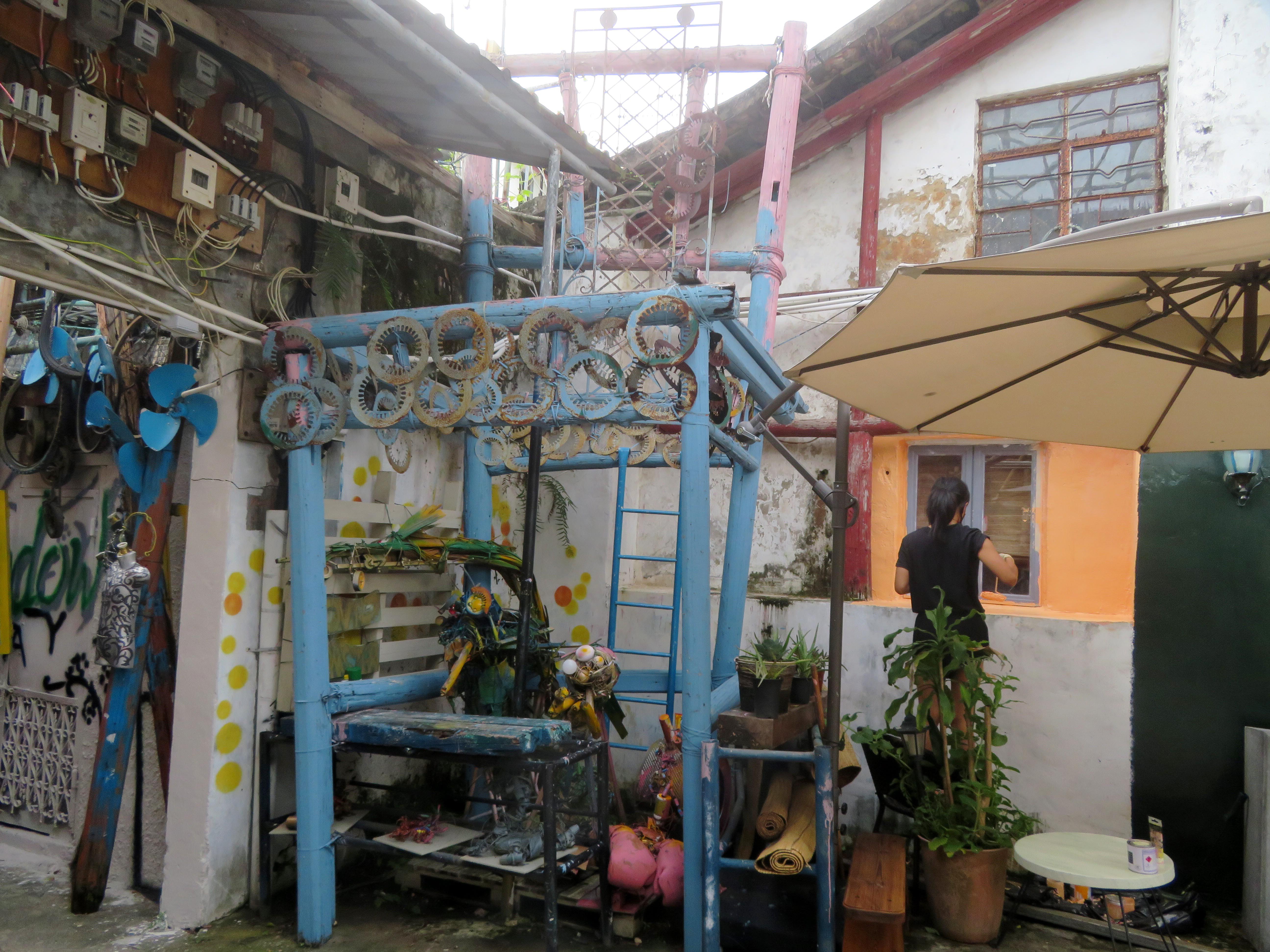 無論是小巷、室內(nèi)外展場都要留神地邊走邊看,因為內(nèi)有太多意想不到的陳設(shè)。小巷實際是塗鴉走廊,最突出是有一幅「You are a star」壁畫, 一邊牆身則掛了舊式信箱,天花有用紙杯砌成的圓形圖案。在小巷盡頭的天井,掛滿單車轆、滑板車、風(fēng)扇等,附近還有一張巨人椅子,要用梯才能攀登。室外展場實際是裝置藝術(shù)大花園,入口梯級旁栽種植物及有小水池,園內(nèi)有巨幅塗鴉牆、用破椅和鐵水管堆砌的塔、可用來作敲擊樂的平底鑊等。室內(nèi)展品有鐘牆、畫等,這地方還有與建築物融為一體的榕樹、圖書角、可用來辦小型音樂會的閣樓。