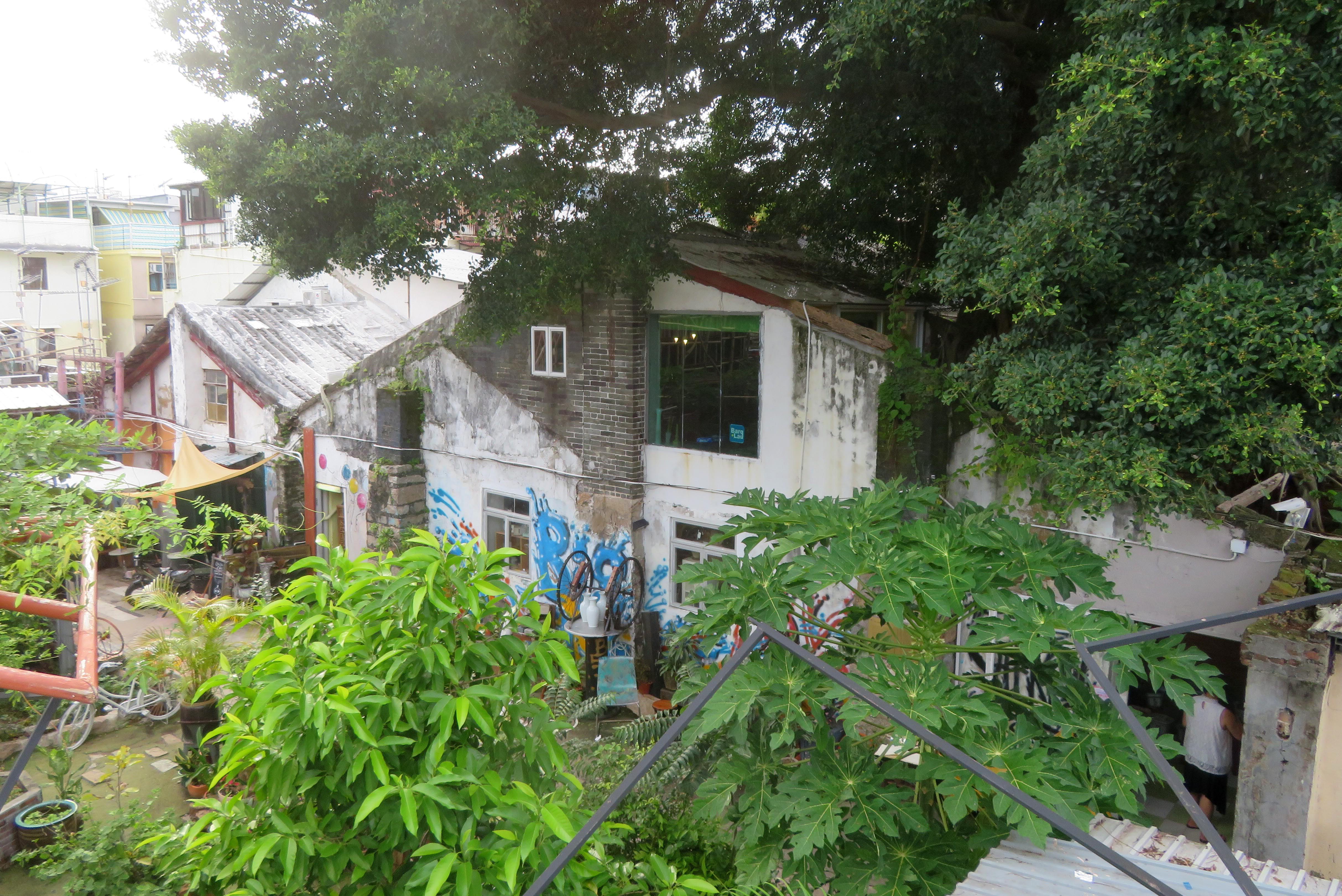 整個花園的布局,予人有點臺灣文創(chuàng)園區(qū)的感覺,然而它在未變身前,是一片頹垣敗瓦、有很多建築廢料的荒廢牛皮廠。Sherry說,自己是坪洲人,長大後離島往外間工作,但後來亦回到小島生活,眼見從小認(rèn)識的牛皮廠逐漸成為廢墟很可惜,又想到這地方可讓她實踐志向,於是10年前向業(yè)主承租4萬呎廠地中的約2萬呎,其中萬多呎是花園,餘下是出租地方及辦公地方。租金收益讓她可支撐花園的開支,包括聘用一名建築設(shè)計師協(xié)助設(shè)計花園及做裝置藝術(shù)品。