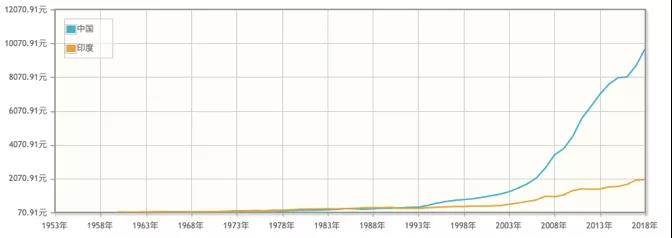 第三是強(qiáng)勢政府。這一點(diǎn)即是中國模式的重要特徵,也是過去40年中國迅速發(fā)展的重要解釋。印度現(xiàn)在的人均 GDP 只有中國的 1/5。但是如果回顧一下曆史,你會(huì)大吃一驚。1978 年改革開放之初,中國的人均 GDP(156 美元)比印度(205 美元)還低,直到 1991 年中國才第一次超越印度。從此,一發(fā)不可收拾,龍象漸行漸遠(yuǎn)。