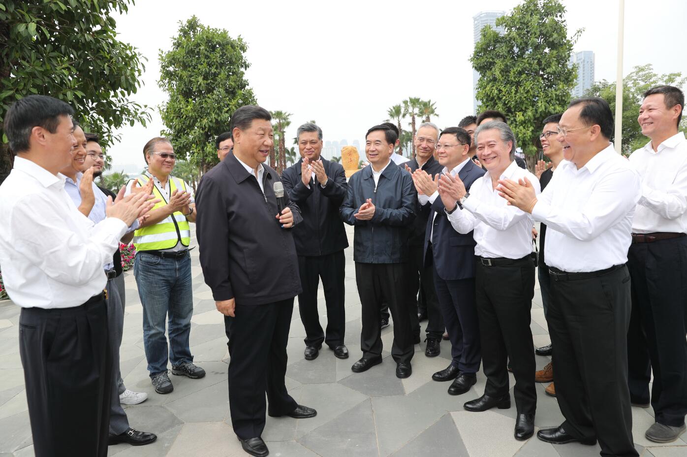 2018年10月23日上午10時許,珠??诎?。習(xí)近平宣布港珠澳大橋正式開通?!复髽蚪ǔ赏ㄜ?,進(jìn)一步堅定了我們對中國特色社會主義的道路自信、理論自信、制度自信、文化自信,充分說明社會主義是幹出來的,新時代也是幹出來的!」