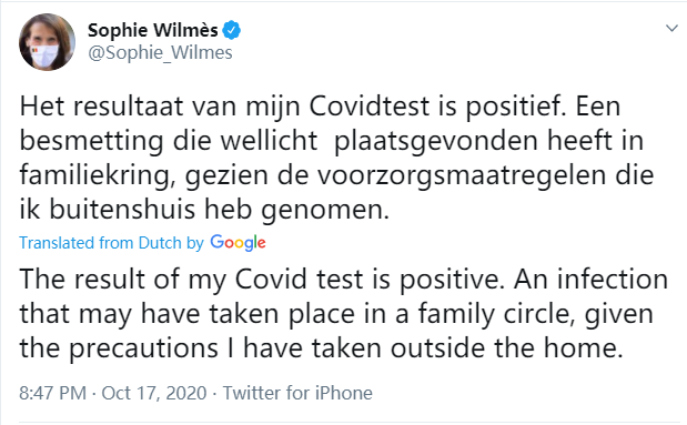比利時外交大臣維爾梅斯新冠檢測呈陽性