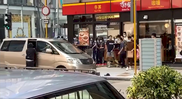 今日下午2時(shí)許,一對(duì)男女駕駛1輛7人車停泊在咸美頓街後,男事主步行到附近彌敦道570號(hào)基利商業(yè)大廈,到樓上1間找換店換取美金。其後準(zhǔn)備返回車時(shí),突被4名穿連帽子上衣、戴口罩的男子揮鐵鎚襲擊,男事主猝不及防受傷倒地,賊人承亂欲搶去他裝有美金的手袋,因當(dāng)時(shí)街上有大量途人,見狀馬上喝止,多名男途人上前制服其中1人,其餘3名賊人見事敗馬上登上停在路旁的接應(yīng)7人車,慌忙間車門亦未關(guān)上逃去無(wú)蹤。