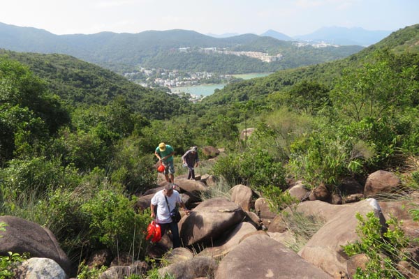 上洋村劉族村民到大山拜祭祖先,要走過崎嶇大石澗,遠(yuǎn)方為相思灣一帶。記者 鄭玉君攝