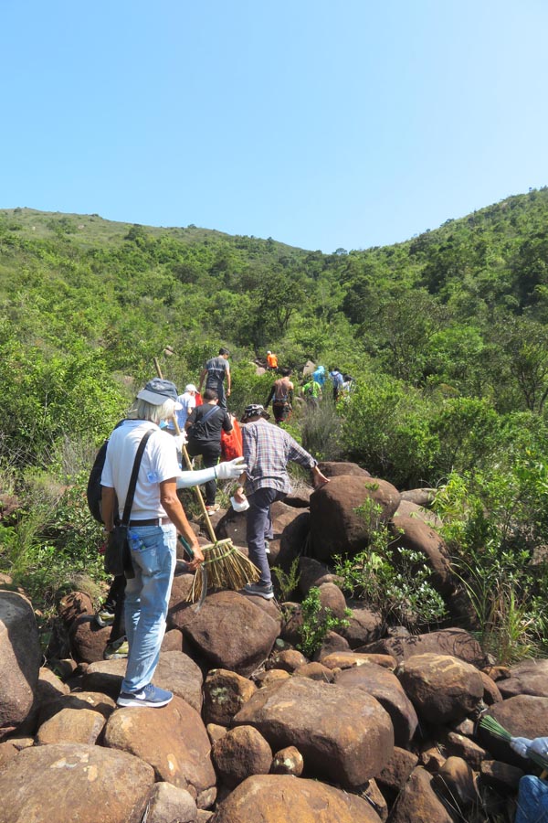 在回程期間,大家在一處較多平坦石頭的水澗分享祭品,其樂融融,所有垃圾放在大袋內(nèi)帶走,以免影響祖先安息之地。(記者 鄭玉君)