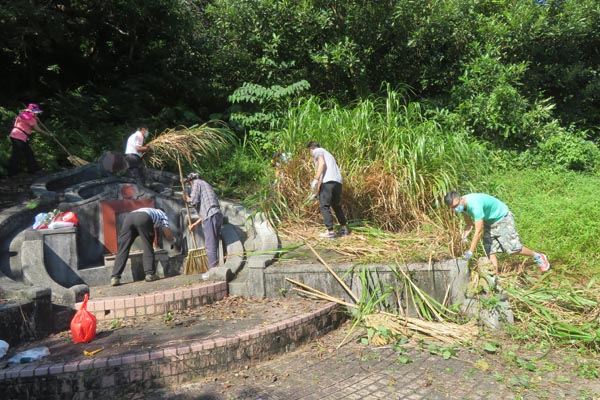 劉族子孫努力清理五塊田開基祖墓地周邊雜草。
