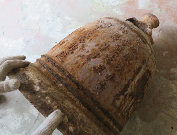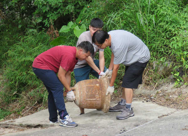義工抬走新發(fā)現(xiàn)的銅鐘。