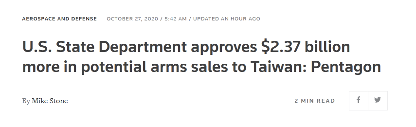 10月21日,美國國防部國防安全合作局發(fā)表聲明稱,美國務(wù)院已批準(zhǔn)向臺(tái)灣出售總額約18億美元的武器裝備,包括洛克希德·馬丁公司生產(chǎn)的「海馬斯」多管火箭炮系統(tǒng)、波音防務(wù)生產(chǎn)的SLAM-ER增程型空對地導(dǎo)彈、F-16戰(zhàn)機(jī)新型偵察吊艙等?!度A爾街日報(bào)》26日稱,雷神公司因此次軍售的MS-110新式偵察吊艙被中國列入制裁名單。