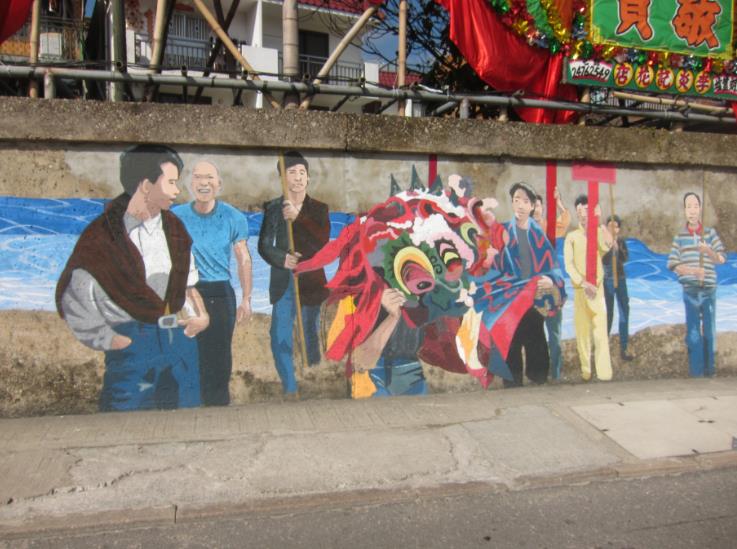 蠔涌村圍壆人神共樂的壁畫,是獻(xiàn)給車公的另類貢品。
