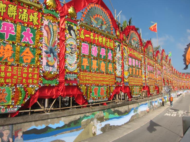 蠔涌聯(lián)鄉(xiāng)庚子年太平清醮巨型花牌陣儼如城牆。特約記者 梁美儀攝