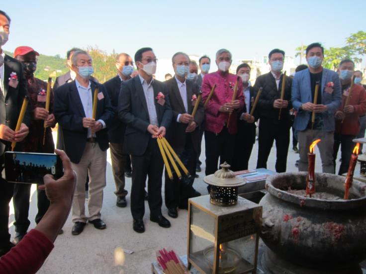 新界鄉(xiāng)議局主席劉業(yè)強(qiáng)(手拿三支大香者)也專程來向車公上香。