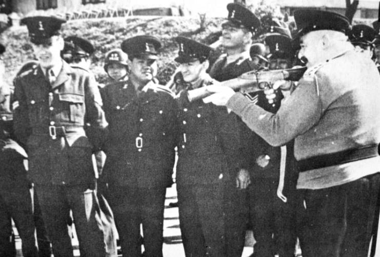 教官古日持向到訪軍人示範(fàn)防暴槍械。林建強(qiáng)提供圖片