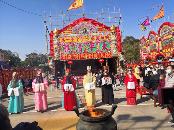 粉嶺圍庚子年十年一次太平清醮已於跨年舉行。新冠肺炎疫情打擊醮會(huì)活動(dòng),近2000名海外鄉(xiāng)親不能回港聚首,退訂機(jī)票捐失數(shù)十萬(wàn)元。廣場(chǎng)空地不能搭棚做戲,醮場(chǎng)範(fàn)圍大縮水。行鄉(xiāng)由往屆逾2000人參與,今屆只限兩人。面對(duì)限制,粉嶺圍彭氏族人保持傳統(tǒng)節(jié)慶中特色,不論村中父老、緣首,縱使力倦神疲仍互相打氣,可見(jiàn)舉辦太平清醮除超幽濟(jì)陽(yáng)、消災(zāi)解難外,更體現(xiàn)村民的向心力及和睦親誼力。