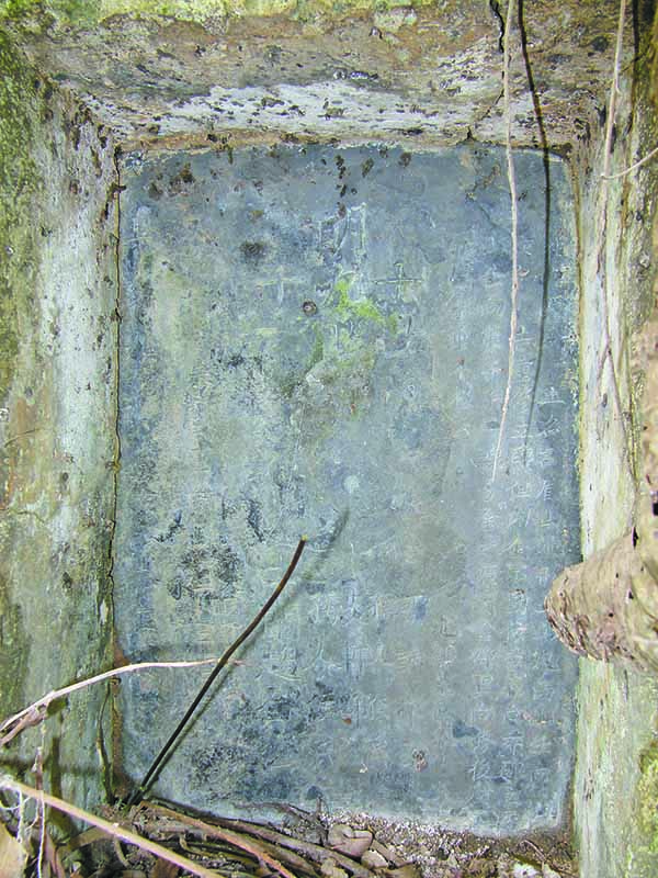 那筆者發(fā)現(xiàn)的古墓也有風(fēng)水喝名「上山鳳」,是東莞一名張姓地師所點(diǎn),雖然碑文斑駁,加上有破損,但仍可知道該墓是個(gè)合葬墓,正墓主是明九世祖鄧淡軒和侯氏夫婦,另外附葬有十世和十一世祖等多人,而在碑末日期一行,隱見(jiàn)有「光緒」等幾個(gè)殘字,可知此墓在光緒年間曾修葺過(guò)。