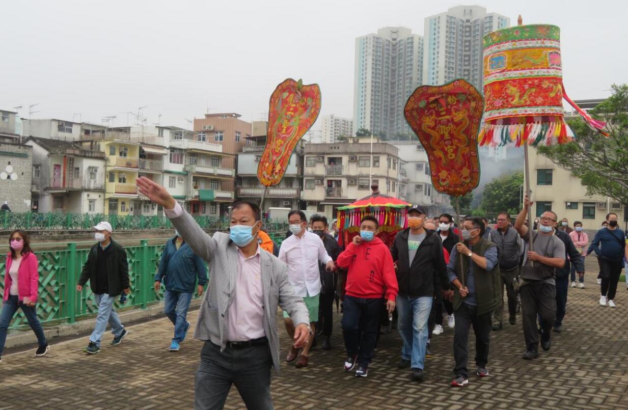 每年元宵佳節(jié)點燈酬神、逐疫祈福的太平洪朝,是粉嶺圍彭族數(shù)百年來新春傳統(tǒng)習俗。今年在新冠肺炎疫情下,因限聚令而取消歌唱晚會和兩日盆菜宴。數(shù)名海外鄉(xiāng)親未能回港出任 「神頭」 ,依序由在港輪候的 「神頭」 接上。全港獨有的搶雞毛成洪朝亮點。古時農(nóng)村,每年持之以恒酬恩逐疫,對現(xiàn)代人在抗疫疲勞之際在意志上可供借鑒。