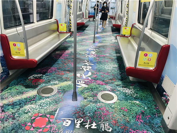 記者在現(xiàn)場看到,專列中第一、三、五節(jié)車廂展示畢節(jié)百里杜鵑風光;第二節(jié)車廂展示畢節(jié)織金洞風光;第四節(jié)展示畢節(jié)九洞天風光;第六節(jié)車廂展畢節(jié)烏江源百里畫廊風光。專列投放將利用地鐵傳媒直觀、受眾廣等有效優(yōu)勢,宣傳展示畢節(jié)的旅遊拳頭產品,提升「洞天福地·花海畢節(jié)」知名度。