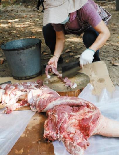 豬肉是「食山頭」的靈魂,據(jù)祭主鄧生說,今次祭祖花費(fèi)5萬多元,其中豬肉支出愈來愈多,與去年相比,生豬肉已由每斤73元升至75元。鄧聯(lián)興說,「食山頭」豬肉分量多年前由百多斤加至二百斤,近五六年再調(diào)升至350斤。他指,今次盆多豬肉分量自然少,但他相信足夠4至6人飽腹,大快朵頤。(記者 鄭玉君)