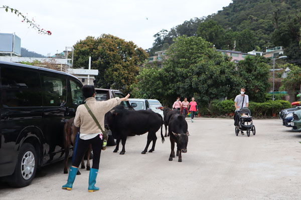 有耕種經(jīng)歷的李馬田,對於牛隻的生存狀況容易理解,但城市人Camille每天最少用四個半小時巡村觀察牛隻狀況,風(fēng)雨不改,這究竟是怎麼一回事?Camille說,十四鄉(xiāng)有很多村民及外來者做牛義工,但包括她在內(nèi)的牧者有3人,每人每天分地方巡視兩三次,主要防止牛隻行出西沙路及石屎車路,「5點鐘起身,半小時後出門,早餐也來不及吃,若情況順利,8時多可巡完,若有牛隻行了出石屎路,要搞到11時,下晝4時多再巡,巡兩小時,6時多可收工」,別人收工有糧出,她純粹是義工,這種生活已過了好幾年。