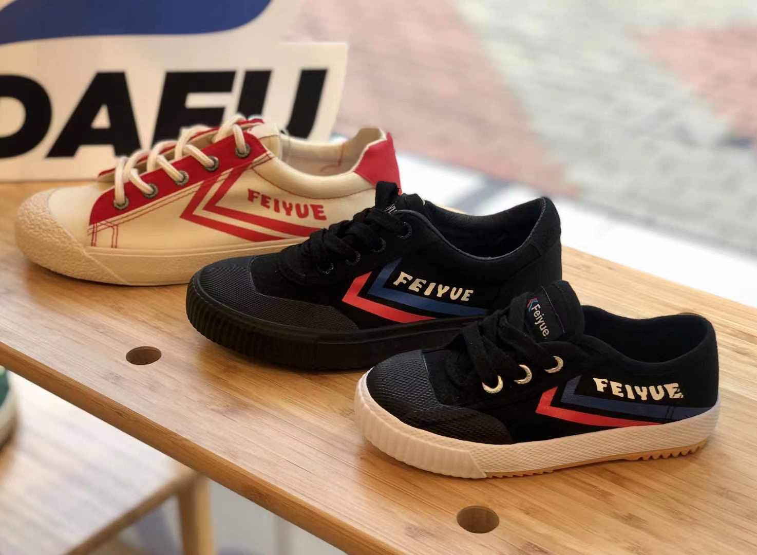 這雙小白鞋可追溯至上世紀(jì)二、三十年代的上海,最初由大孚橡皮工廠製造。白色帆布鞋面、紅藍雙鈎、黃色硫化底,設(shè)計簡潔,是上一代人的回憶,也被少林寺武僧選做專用練功鞋,可見其舒適度。隨著運動風(fēng)、復(fù)古風(fēng)的興起,加上白色運動鞋的穿搭歷久不衰,價錢不算昂貴,弄髒也不心痛,「FEIYUE」鞋成為不少明星名媛的心頭好。如賭王千金何超蓮就穿著出席各種時尚活動,並與Chanel腰包一同搭配,休閒之餘又不失時尚感;蔡思貝也在劇集《機場特警》中穿過。