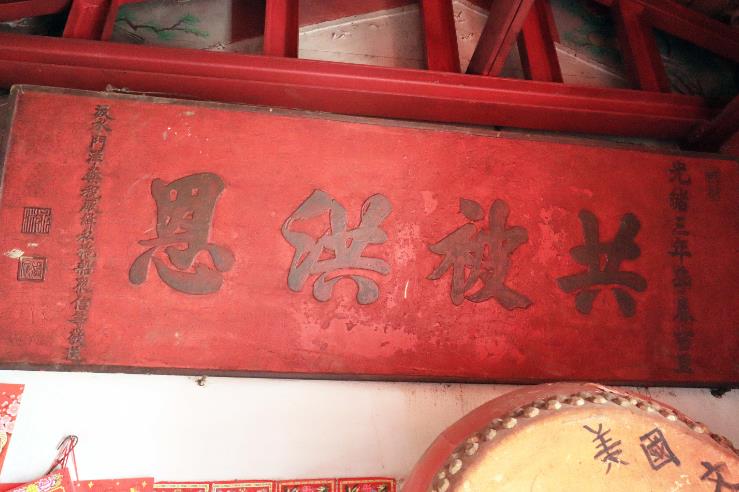 光緒三年(1877年)的牌匾由汲水門洋藥稅廠緝私拖船眾信贈送。