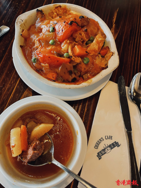 港式西餐,又名「豉油西餐」,在上世紀60年代的香港,只有外國人或上流人士有機會享受西餐,於是,許多餐廳開始選用本地食材和調(diào)味料,豉油提味,番茄醬羅宋湯,製作出普通大眾也可享受的西餐?;屎箫埖昃驮谶@樣的時代背景中產(chǎn)生,因開業(yè)於1952年,剛好是英女皇即位之時,老闆隨即取名為皇后飯店。港式西餐承載了老一輩香港人的集體回憶,電影《花樣年華》中的金雀餐廳以及《阿飛正傳》中的皇后飯店,保留了正宗的港味。