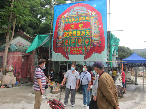 馬灣今年的天后寶誕拜神儀式已於5月3日舉行,因疫情限聚令不能演神功戲及舞獅等活動(dòng),早上11時(shí)天后廟管理委員會(huì)及鄉(xiāng)委會(huì)成員聚集天后廟門前以燒豬、雞和生果上香拜神,前來(lái)拜祭的居民多是長(zhǎng)者。青衣及荃灣等花炮會(huì)帶備祭品前來(lái)賀誕。陳崇祿說(shuō),十多年前各地前來(lái)賀誕的花炮會(huì)有幾十個(gè),現(xiàn)在只有逾十個(gè)。馬灣舊村繁盛時(shí)期會(huì)在天后古廟對(duì)出臨??盏卮钆镅萆窆?,十多年前居民搬往新村後,便在新村的空地演戲,每屆天后寶誕都會(huì)迎請(qǐng)馬灣北灣天后和荃灣青龍頭天后到來(lái)供奉。