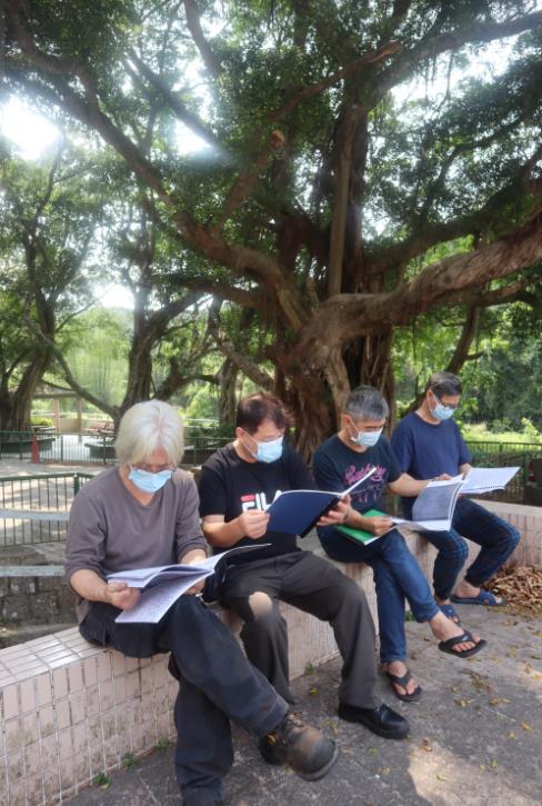 各房子孫榕樹邊細閱族史源流。