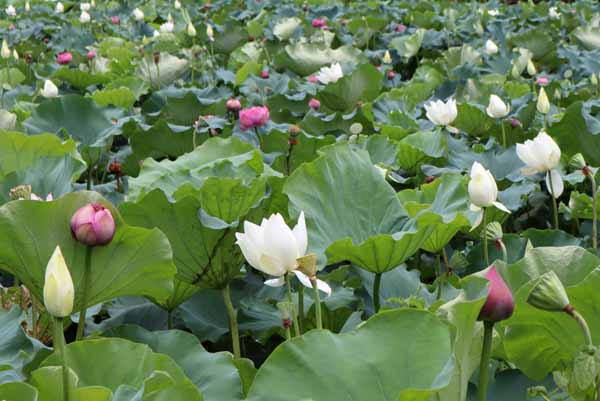 炎夏荷花艷,從前新界村落人家的池塘,荷花正盛放,但隨著土地愈見矜貴,發(fā)展處處,這道風(fēng)景已鮮見,現(xiàn)時(shí)能找到這種高潔花兒蹤影的地方,大多在公園及農(nóng)莊。日前記者在機(jī)緣下,有機(jī)會(huì)目睹私人庭園的大片荷塘,這個(gè)荷塘估計(jì)有兩三萬呎,紅白兩色荷花正綻放,園主還備小木艇,可劃到塘中摘蓮蓬取蓮子。