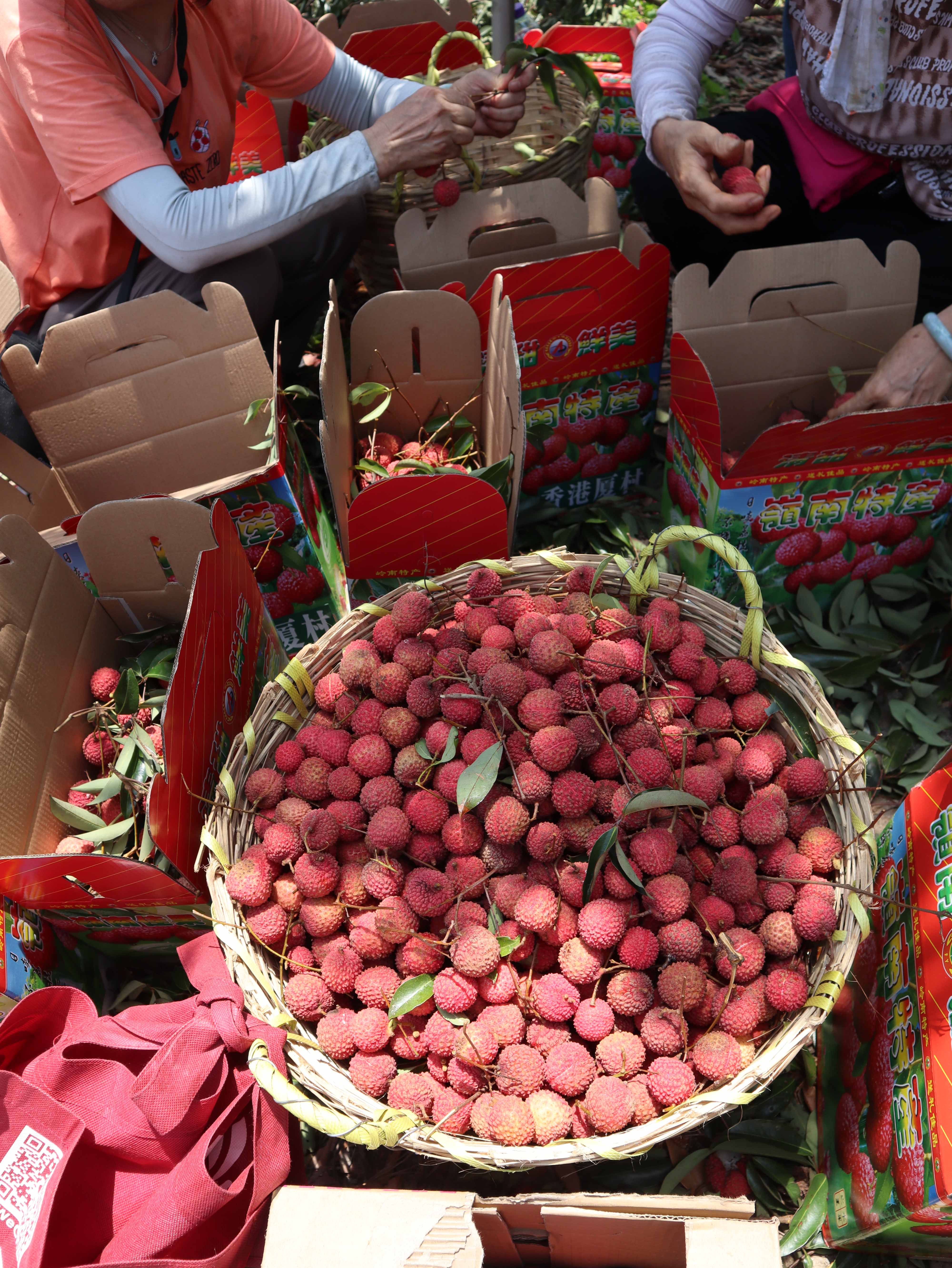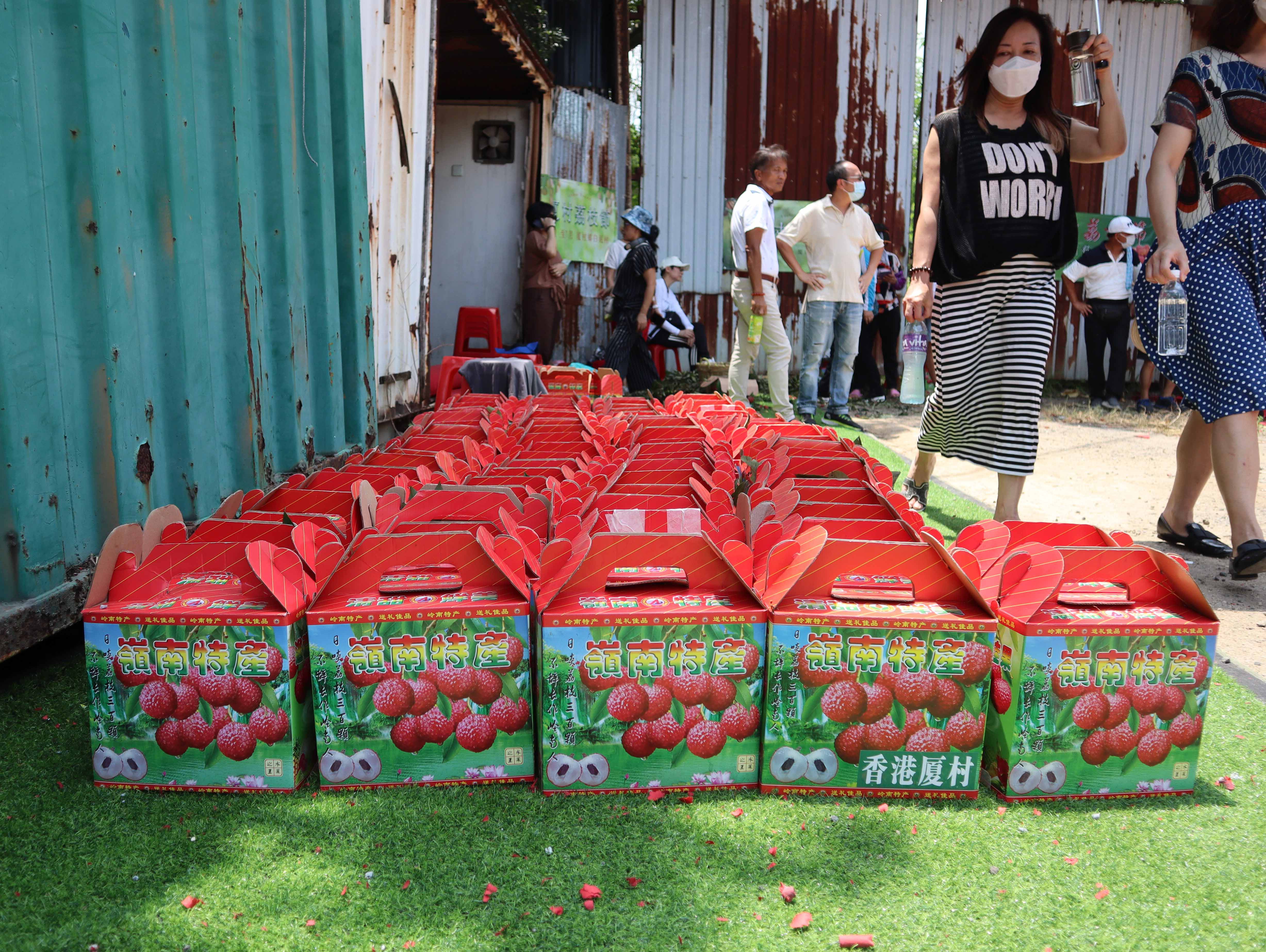 每盒5斤裝荔枝準(zhǔn)備派發(fā)予鄉(xiāng)內(nèi)村民。