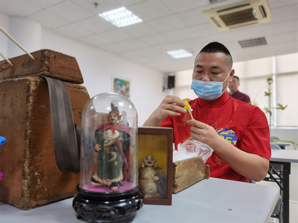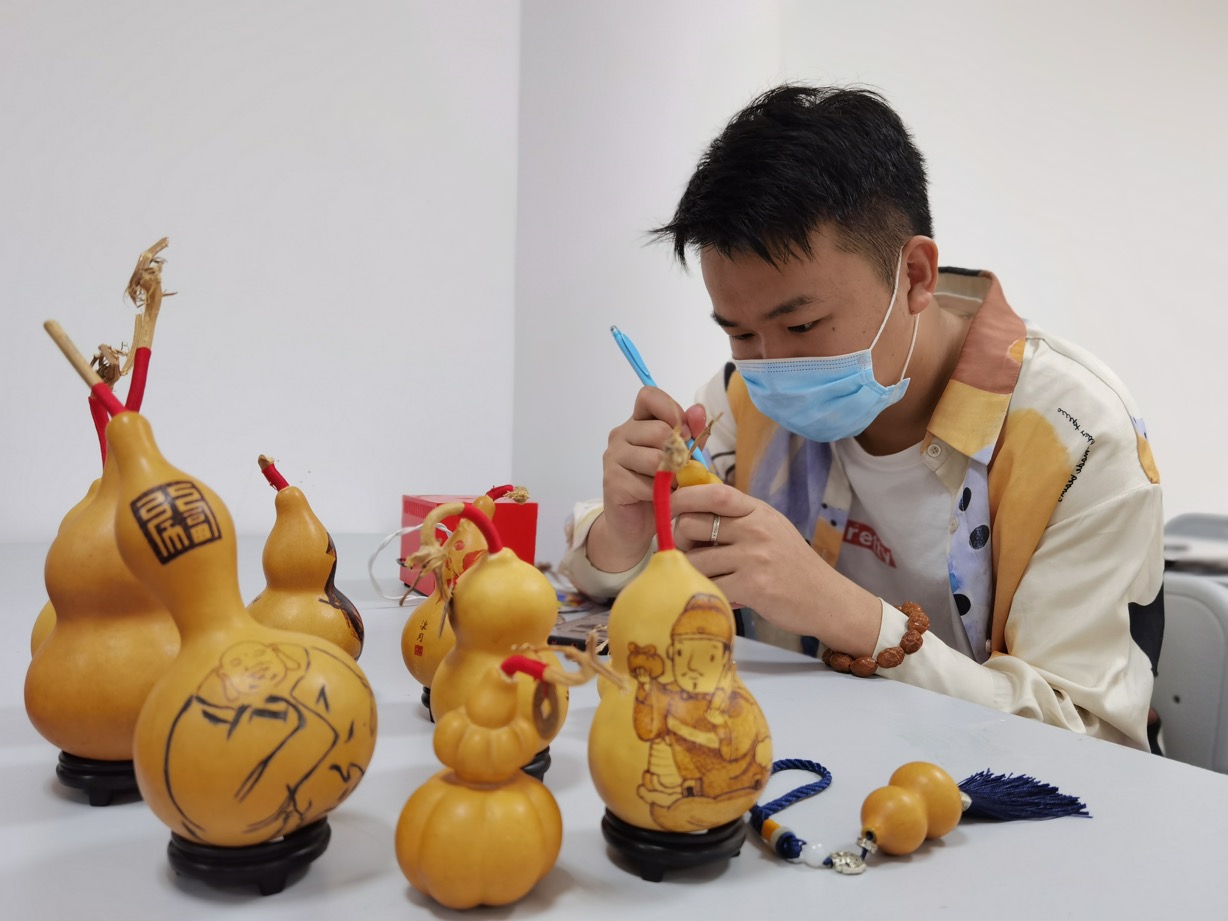 上午9點(diǎn),現(xiàn)場(chǎng)分為了傳統(tǒng)手工藝類和音樂舞蹈類兩個(gè)組別。棕編、鐵藝、沙畫、鈎織、捏面人、烙畫葫蘆,一件件精妙絕倫的手工藝品讓人驚嘆。街舞、古典舞、吉他彈唱、小提琴演奏,一曲曲動(dòng)聽的樂曲配合絢麗的舞姿,讓人忍不住一起搖擺。
