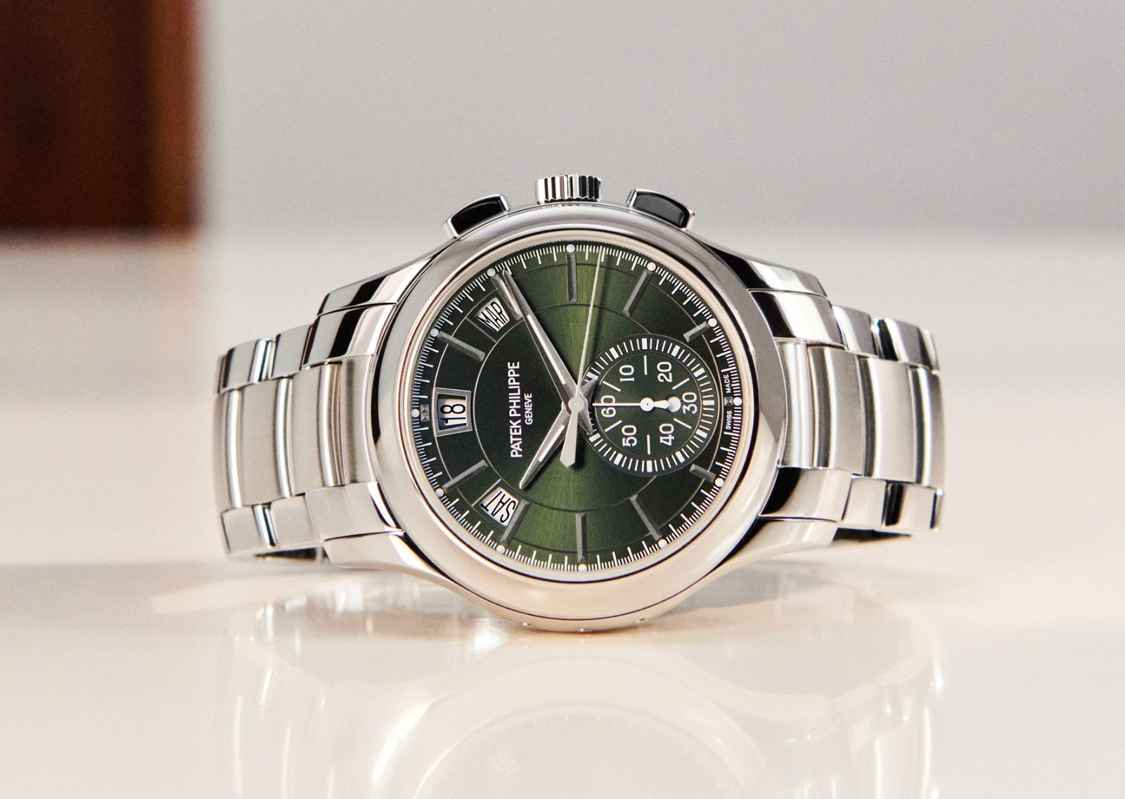 2015年,結(jié)集兩項實用複雜功能:自動上弦和回位計時秒與專利年曆、編號5905的腕表以鉑金款式應(yīng)巿;2019年,推出同系列的玫瑰金款式。今年,品牌採用旗下時計系列鮮見的鋼材,重新演繹這枚腕表的獨(dú)特風(fēng)格,並搭配三鏈節(jié)綜合表鏈,帶來鋼製運(yùn)動型的鮮明個性,一新品牌複雜功能時計的佩戴模式。編號5905/1A-001的新款腕表,呈現(xiàn)全新橄欖綠色,表面設(shè)計確保新添的複雜功能顯示清晰;配備中央計時秒針,6時位置設(shè)有60分鐘附屬顯示盤;星期/日/月三枚顯示窗沿弧線並列,以便即時讀取年曆資料。6時位置另外開闢一枚小巧日/夜顯示器,有助準(zhǔn)確校正日期設(shè)定。寶石玻璃窗透明表殼底蓋下可見CH 28-520 QA 24H機(jī)芯的細(xì)節(jié),機(jī)芯沿用傳統(tǒng)導(dǎo)柱輪傳送計時秒指令,捨棄固有橫向齒輪離合器,採用新式縱向碟形離合器架構(gòu),機(jī)芯幾乎不會產(chǎn)生耗損,令中央計時秒針可作為永久(運(yùn)轉(zhuǎn))秒針使用。專利年曆顯示顧及每月30或31日的變化,每年只須在3月1日校正一次即可維持準(zhǔn)確。
