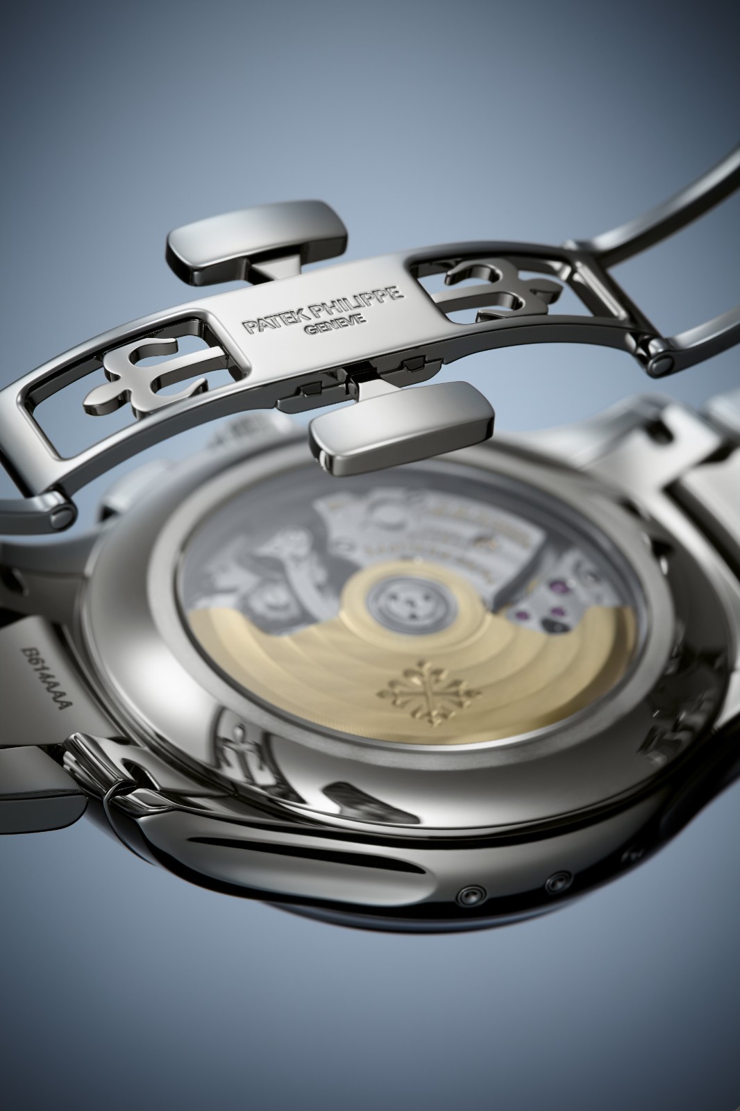 鋼製表殼經(jīng)打磨處理,搭配凹面表環(huán)和槽面表側(cè)。綜合表鏈的設(shè)計意念,源自Aquanaut編號5167/1A腕表表鏈(由外圍打磨鏈節(jié)和內(nèi)圍磨拭鏈節(jié)交織而成),對比效果分明,不同之處是5905/1A-001腕表底部與兩側(cè)經(jīng)打磨處理,與表殼加工效果一致。5905/1A-001將連同編號5905P-001鉑金腕表搭配藍(lán)色表面,以及編號5905R-001玫瑰金腕表搭配啡色表面等現(xiàn)有款式,成為同一系列時計,讓名表愛好者、收藏家有更多選擇。