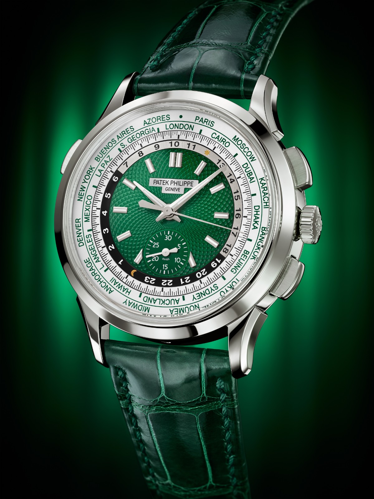 編號5930腕表的設(shè)計意念源自1940年一款獨(dú)特時計,腕表糅合自動上弦和回位計時秒,以及世界時間兩項功能,後者是品牌歷來時計系列複雜功能中的經(jīng)典之一。腕表於2016年推出,當(dāng)時以白金款式配以藍(lán)色表面和相襯表帶。今年重新演繹的5930P-001,結(jié)合鉑金光芒與綠色表面和表帶元素,令經(jīng)典表款更添躍動格調(diào)和都會氣息。