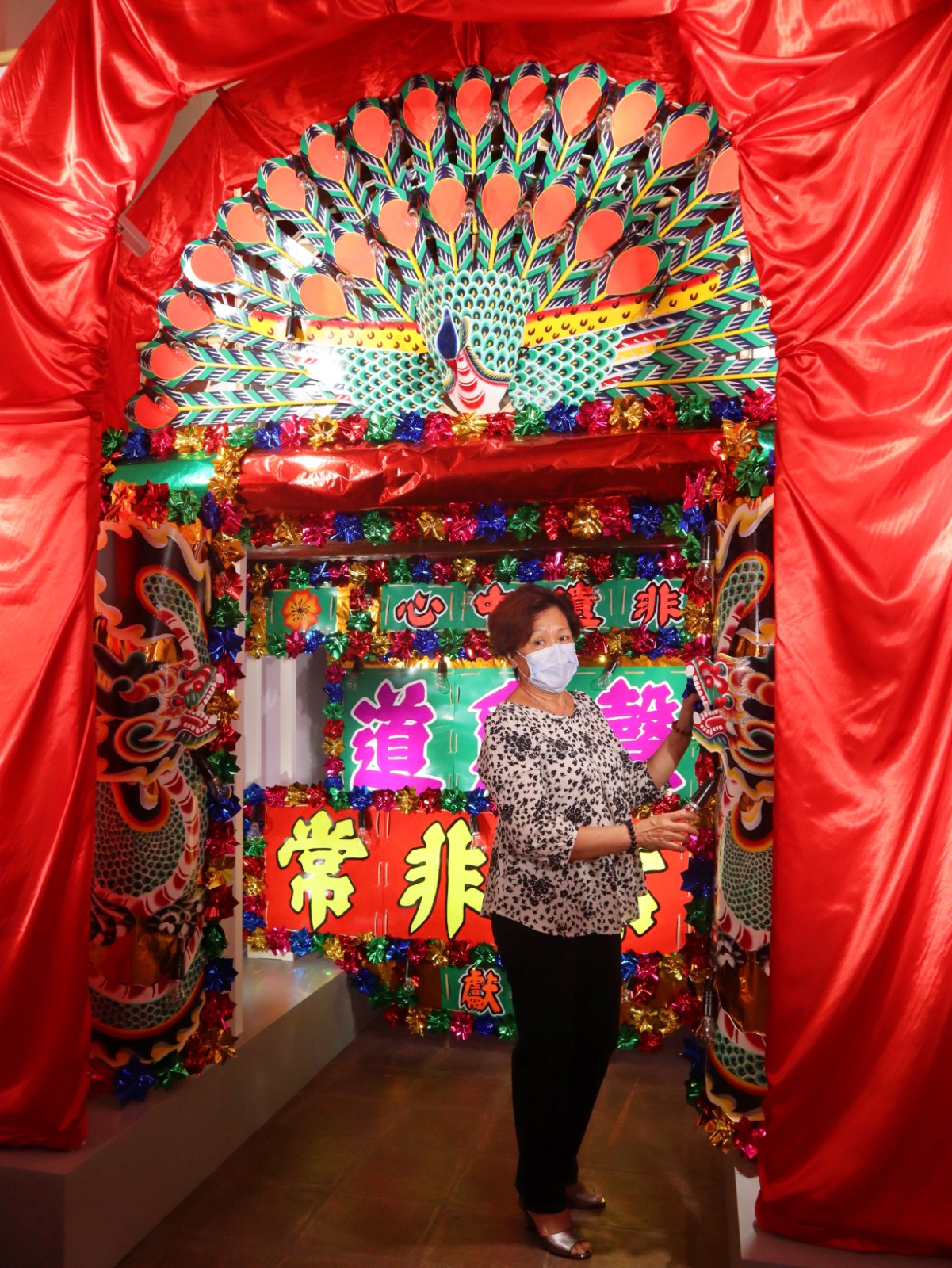 1950年代創(chuàng)辦的李炎記花店的第二代花牌紮作師傅李翠蘭,展覽的花牌為其人手書寫,非常傳統(tǒng)。