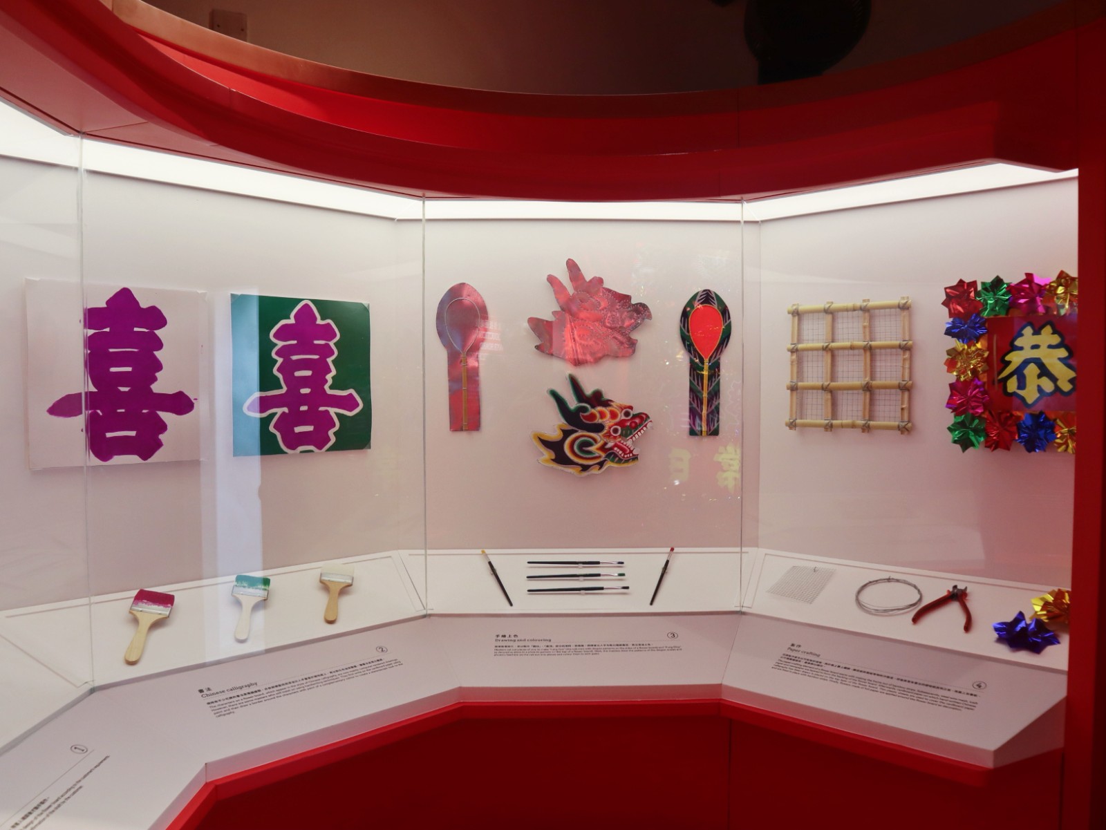 展覽展示了製作花牌所用工具及各個(gè)組成部分。