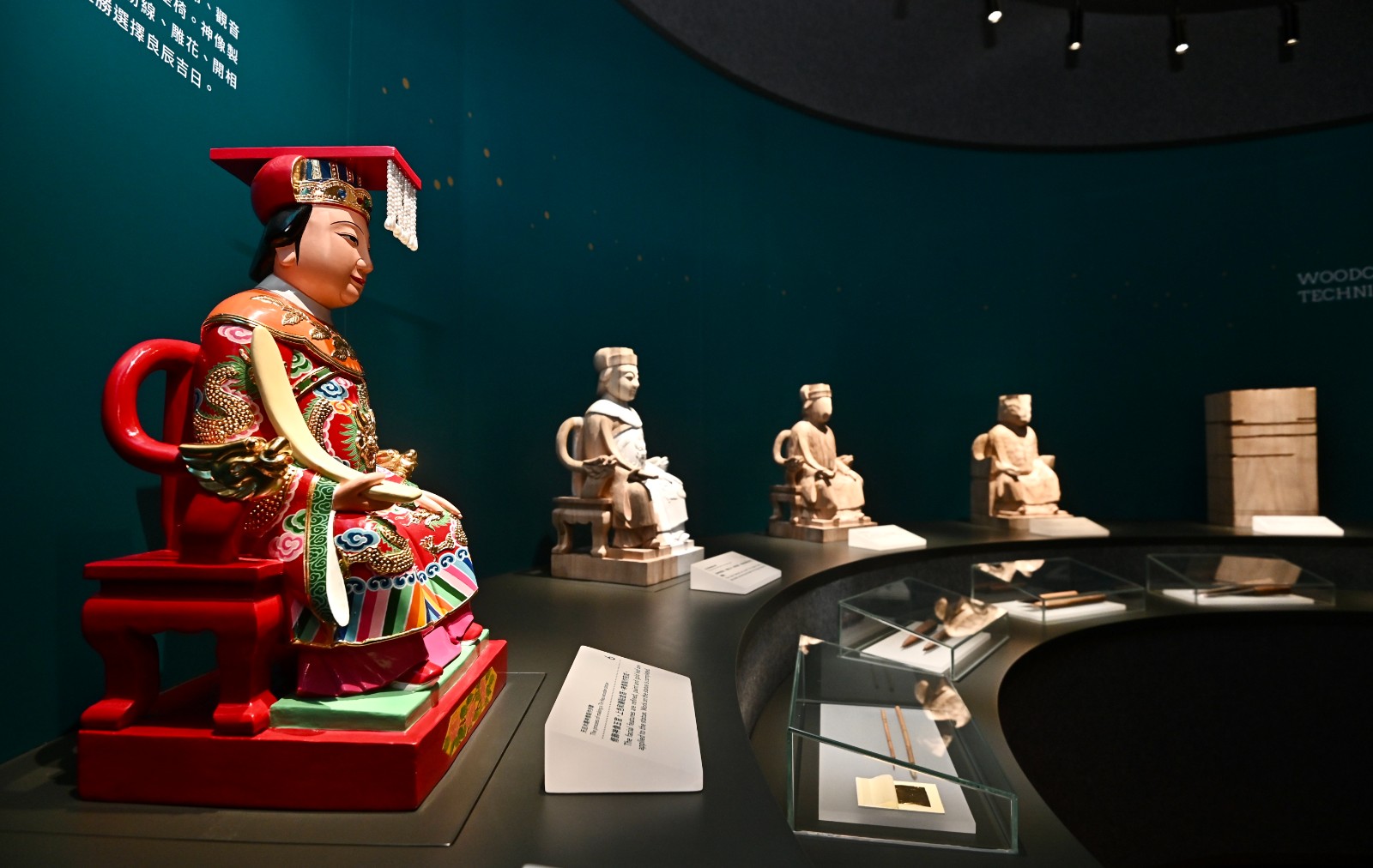 展示了神像雕刻的製作工序,如雕花、上色等。