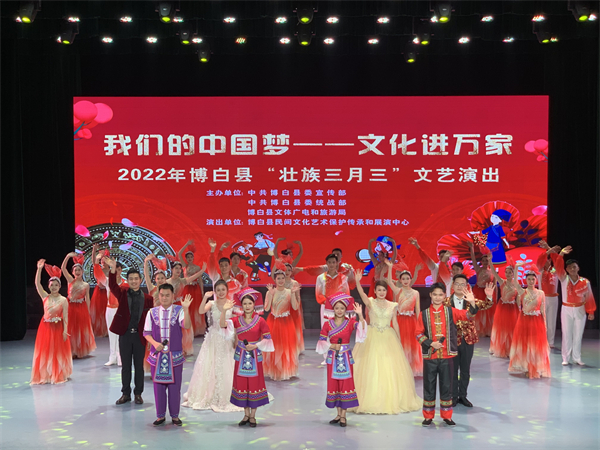 玉林博白縣組織了「我們的中國夢」——文化進萬家活動之2022年博白縣「壯族三月三」文藝演出,在「雲(yún)端」進行了4天的展播,節(jié)目內(nèi)容包括具有民族特色的歌曲、舞蹈、雜技以及桂南採茶戲等,進一步傳承和弘揚了博白優(yōu)秀的傳統(tǒng)文化,營造了濃厚的民族團結進步氛圍。