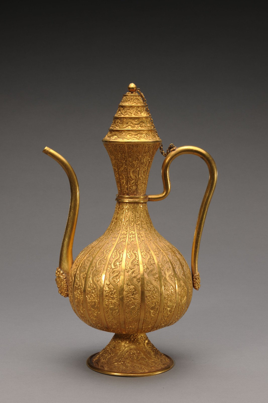 清乾隆金鏨花雲(yún)龍紋執(zhí)壺。(圖:故宮博物院)