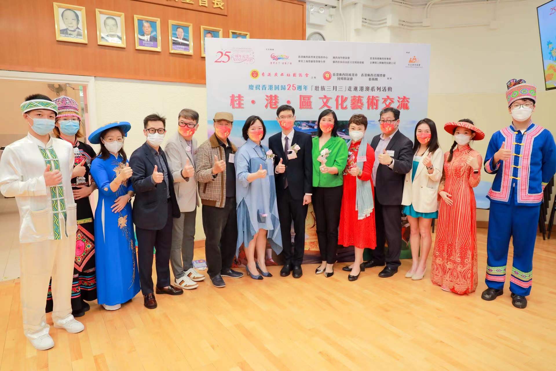 今年是香港回歸祖國25周年,「壯族三月三」走進港澳系列活動於今年4月正式啟動,日前,香港廣西社團總會主辦,香港廣西防城港同鄉(xiāng)聯(lián)誼會聯(lián)合香港廣西社團藝術團在香港沙田區(qū)舉辦了「壯族三月三」走進港澳系列活動之「桂、港、區(qū)文化藝術交流」,讓香港市民同慶回歸之時認識了解「秀甲天下 壯美廣西」的民族文化。