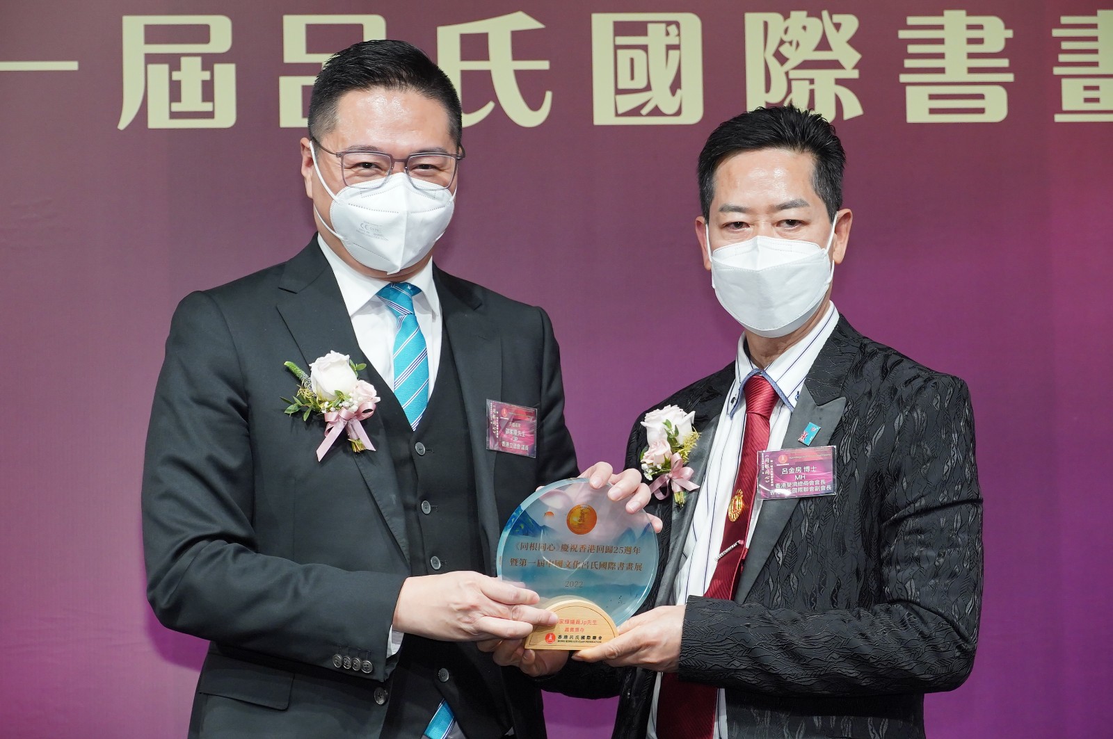 香港呂氏國(guó)際聯(lián)會(huì)會(huì)長(zhǎng)呂小圖致送紀(jì)念品予中聯(lián)辦九龍工作部副處長(zhǎng)劉湛雄。