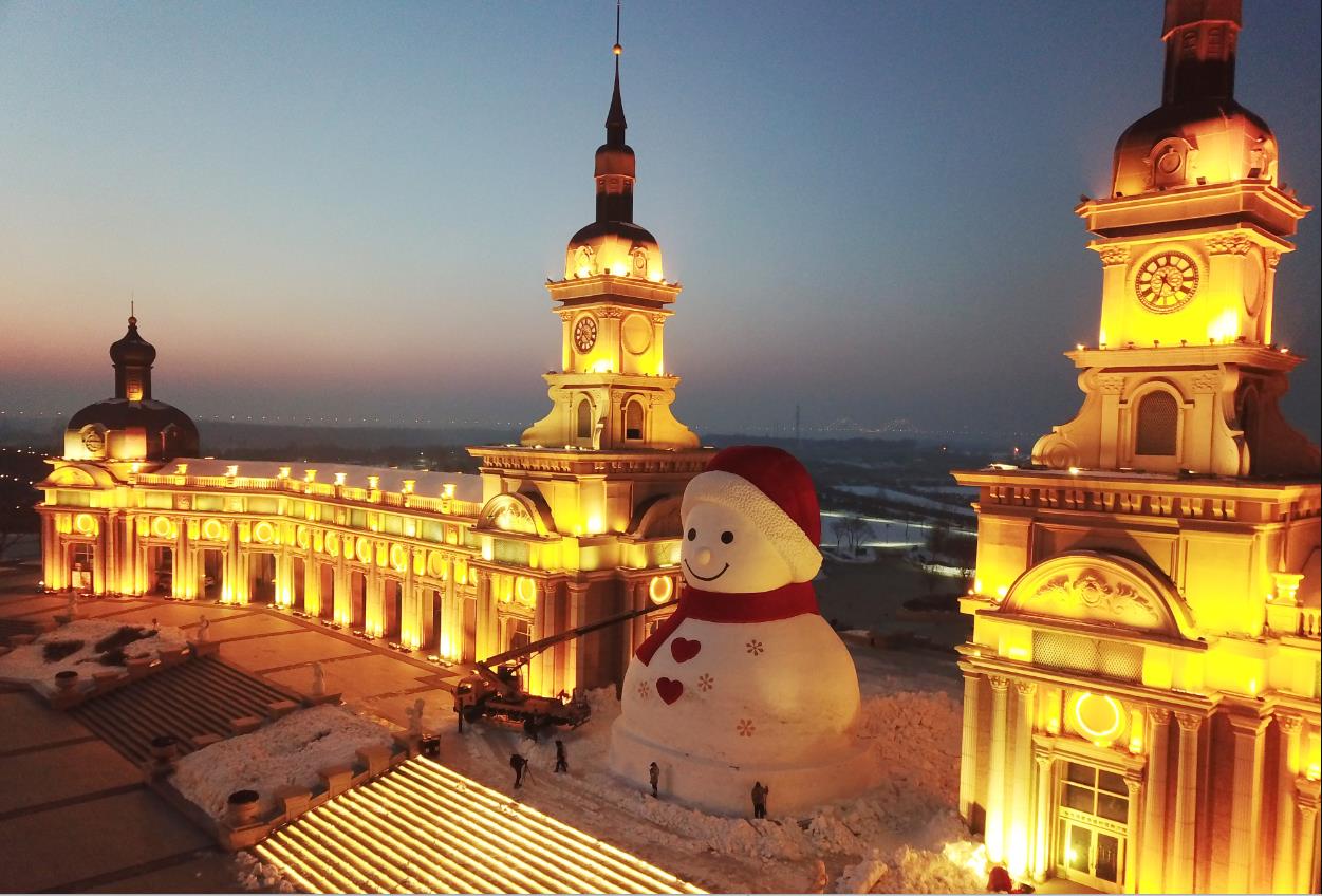 1月4日,經(jīng)過工人十餘天的忙碌,憑藉「超治癒」的笑容,成為哈爾濱「網(wǎng)紅」的大雪人,「回歸」松花江畔。今年的大雪人用雪量約2000立方米,依舊18米高,憨態(tài)可掬。(圖源:新華社)