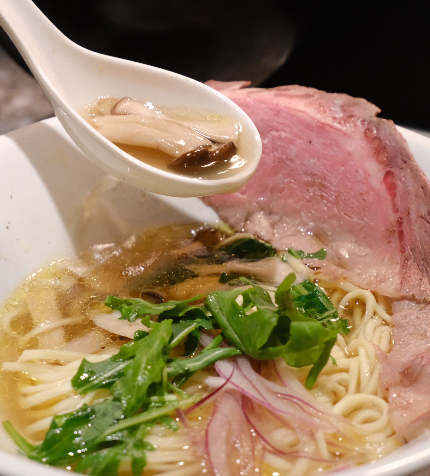 鎮(zhèn)店招牌「五行焦香味噌拉麵」是必吃推介,店舖以熱油高溫烘烤湯底內(nèi)的自家秘製味噌醬,有別於常見(jiàn)的豚骨、醬油等拉麵湯底,帶神秘感的黑色湯底散發(fā)濃郁的焦香和微微煙燻味,入喉後餘韻猶存。叉燒和中太扁平麵盡吸湯底精華,相互融合。若喜歡較清淡口味,推介「法式烤牛清湯拉麵」,此拉麵與美國(guó)扒房Lawry’s The Prime Ribs合作,選用美國(guó)黑毛安格斯牛肉,每片均呈豐富的大理石紋,牛肉清湯加上香氣獨(dú)特的白松露油,味道清爽,鮮味十足。