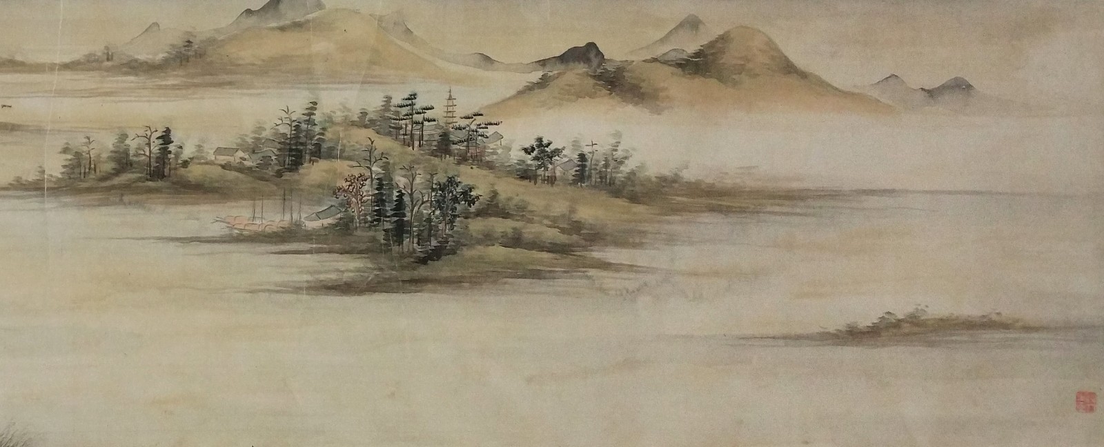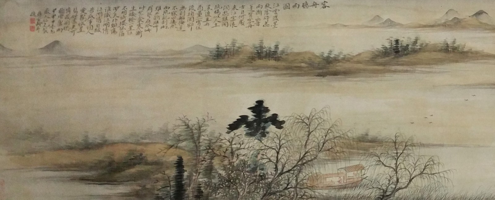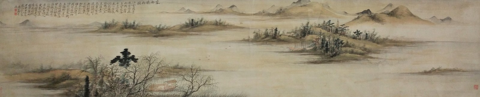 蔣寶齡作品《客舟聽雨圖》,手卷,25x125.5cm。